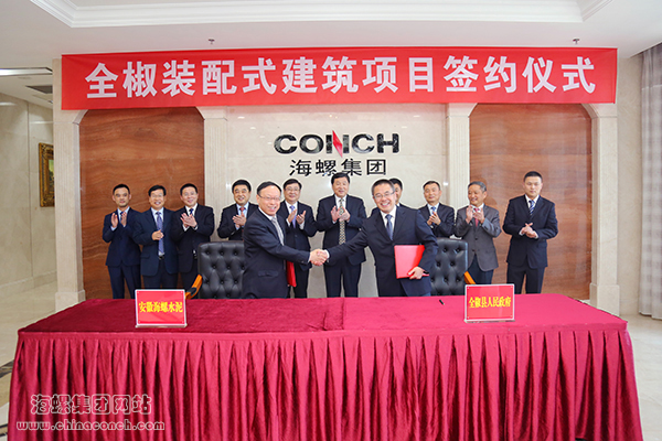 2019年5月24日,海螺水泥與全椒縣人民政府在海螺集團(tuán)總部簽署了裝配式建筑項(xiàng)目合作協(xié)議。海螺集團(tuán)黨委書(shū)記、董事長(zhǎng)高登榜,集團(tuán)公司副總經(jīng)理、海螺水泥副董事長(zhǎng)王建超,海螺水泥總經(jīng)理吳斌、副總經(jīng)理柯秋璧,全椒縣委書(shū)記朱大綱、縣長(zhǎng)楊光、副縣長(zhǎng)闞緒瑞等出席并見(jiàn)證簽約儀式。吳斌、楊光代表雙方簽署協(xié)議。