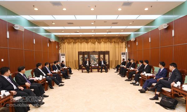 簽約前,集團黨委書記、董事長高登榜與新余市委書記蔣斌、市長猶王瑩一行在新余市會展中心貴賓廳進行了座談交流。
