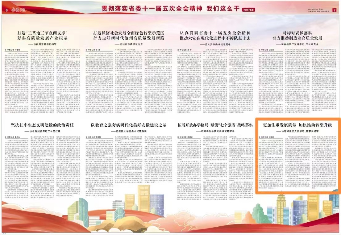 《安徽日?qǐng)?bào)》貫徹落實(shí)省委十一屆五次全會(huì)精神特別報(bào)道,專訪海螺集團(tuán)黨委書記、董事長楊軍。