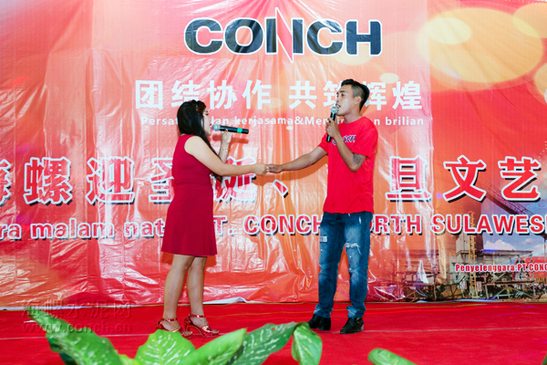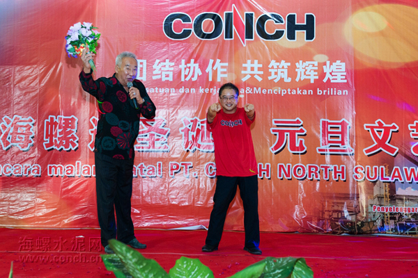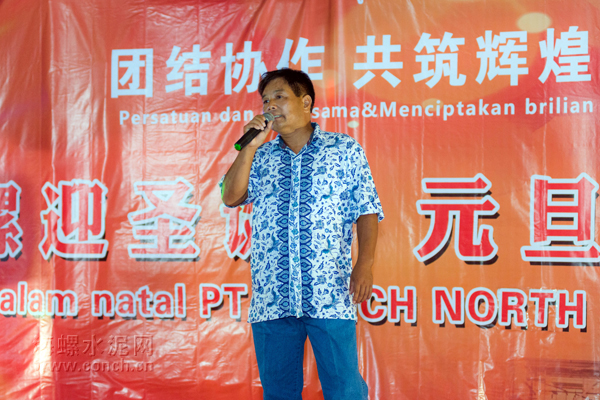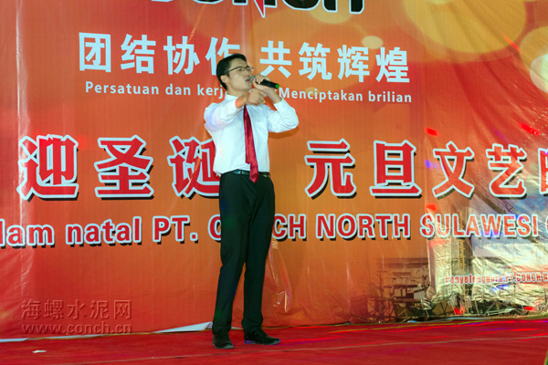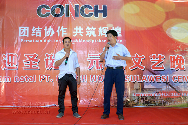 北蘇海螺總經(jīng)理曾國華、PT.SULENCO BOHUSAMI CEMENT公司董事長卓瑞瑞分別為晚會(huì)致辭。他們表示,從2015年5月5日海螺水泥與PT.SULENCO BOHUSAMI CEMENT公司正式簽約并成立北蘇海螺水泥公司以來的一年半時(shí)間里,在各方的幫助與支持下,北蘇海螺全體干部員工只爭朝夕、奮力拼搏,項(xiàng)目已全面進(jìn)入設(shè)備安裝階段,進(jìn)展之快,不但創(chuàng)造了印尼國之最,也創(chuàng)造了中國海外投資之最。展望即將到來的一年,讓我們更加緊密的團(tuán)結(jié)起來,共筑輝煌!曾總代表公司感謝各位朋友、嘉賓的到來,向中國籍、印尼籍員工致以節(jié)日的問候。