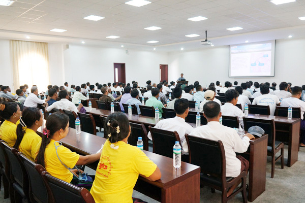 現(xiàn)場(chǎng)參觀結(jié)束后,在辦公樓三樓會(huì)議室,緬甸海螺向村民詳細(xì)介紹了緬甸海螺發(fā)展歷程、先進(jìn)生產(chǎn)工藝、環(huán)保技術(shù)裝備、公司發(fā)展帶來的經(jīng)濟(jì)社會(huì)效益及曼德勒項(xiàng)目規(guī)劃情況和未來預(yù)期。廣大村民聽取了介紹,并發(fā)表感言,一致認(rèn)為緬甸海螺公司技術(shù)先進(jìn),為第一次看到這樣一個(gè)現(xiàn)代化和花園式水泥廠感到高興,非常滿意此次參觀之行,并表示要大力支持曼德勒項(xiàng)目建設(shè)。